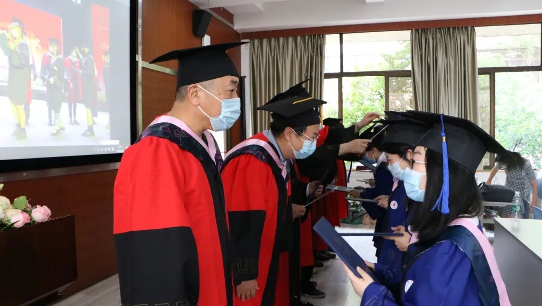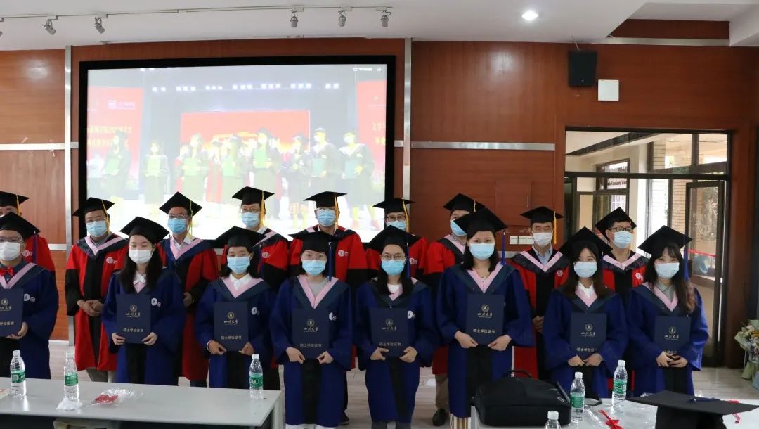 在为2020届校友联络人颁发聘书后,学位授予仪式正式开始。主会场学位分委员会主任曹顺庆教授、李怡院长以及分会场古立峰书记、周维东副院长、操慧副院长分别为星空官网研究生与本科生毕业代表颁发毕业证书并授予学位。