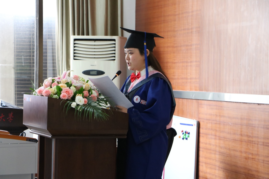 在6月22日的毕业典礼上,2017级新闻学硕士田方圆作为毕业生代表发言,回顾了自己在文新的学习与成长,代表2020届毕业生向学院表达感谢与祝愿。