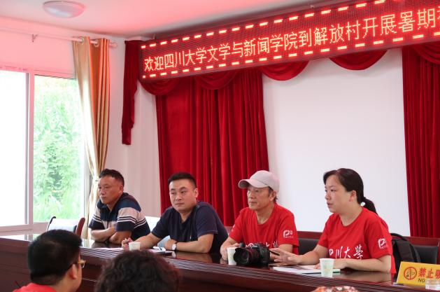 实践队的第一站是解放村。宣讲活动上,解放村第一书记王书记向大家介绍了村子近年来特色产业增收、教育扶贫等方面的情况。张莹老师介绍学院概况及专业特点,干天全老师则用四川话和村民们“拉起了家常”。